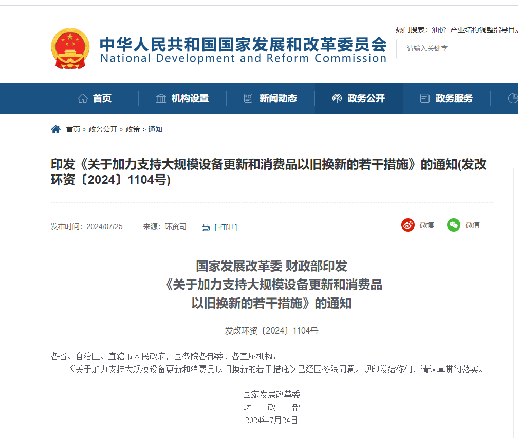 關(guān)于加力支持大規(guī)模設(shè)備更新和消費(fèi)品以舊換新的若干措施